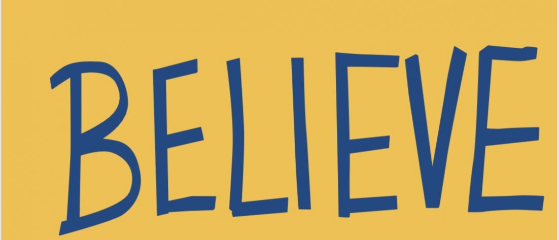 Lasso points to the yellow sign he taped above the coach’s office door in the first episode. It’s one word, ‘Believe’.